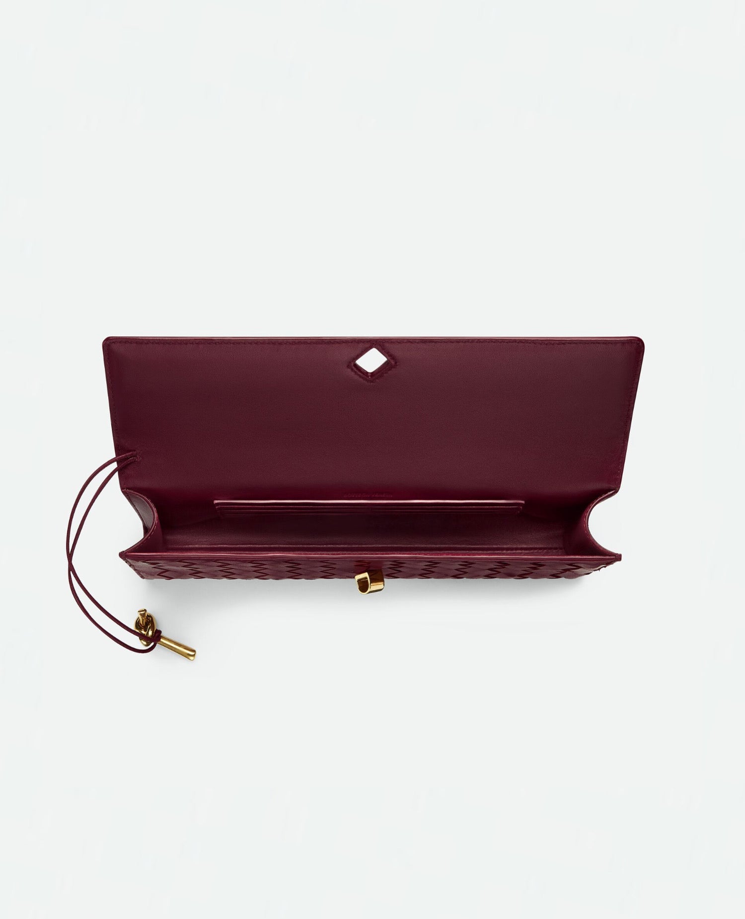 Clutch with handle realised with Intrecciato craftsmanship in soft lambskin leather