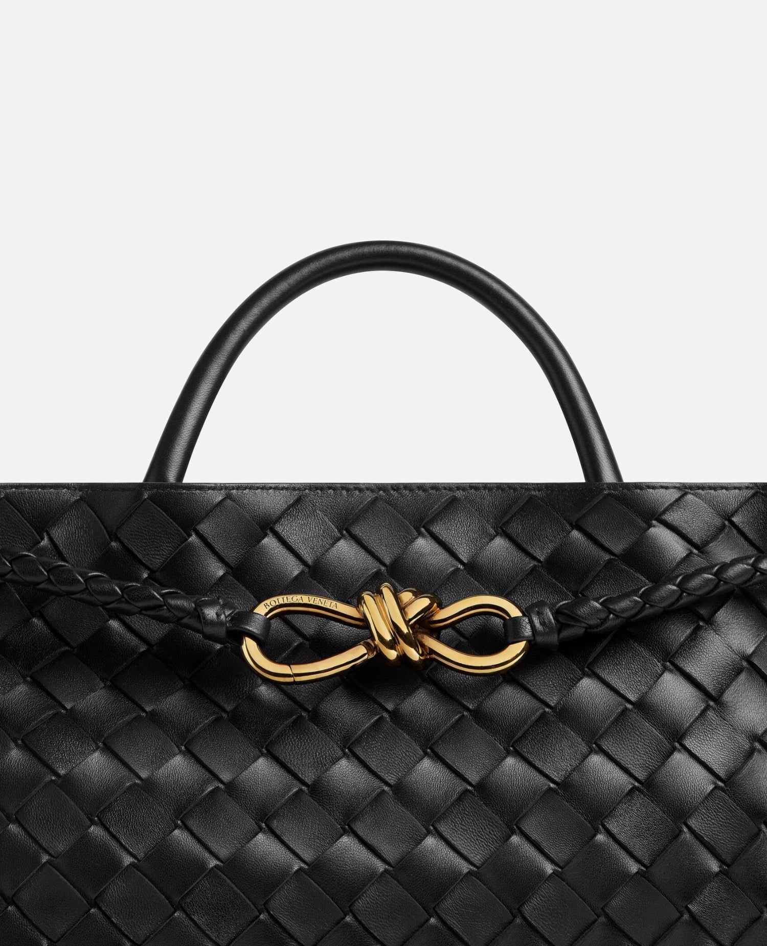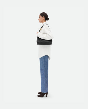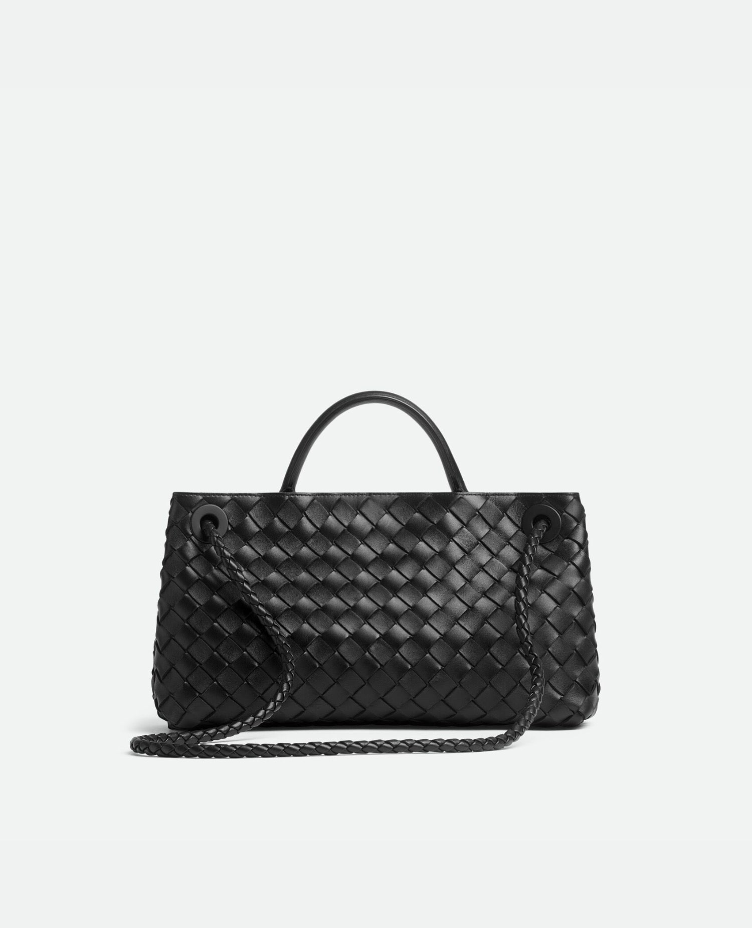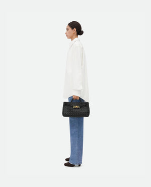 Top handle bag with elongated silhouette in supple Intrecciato leather with signature
