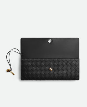 Clutch with handle realised with Intrecciato craftsmanship in soft lambskin leather