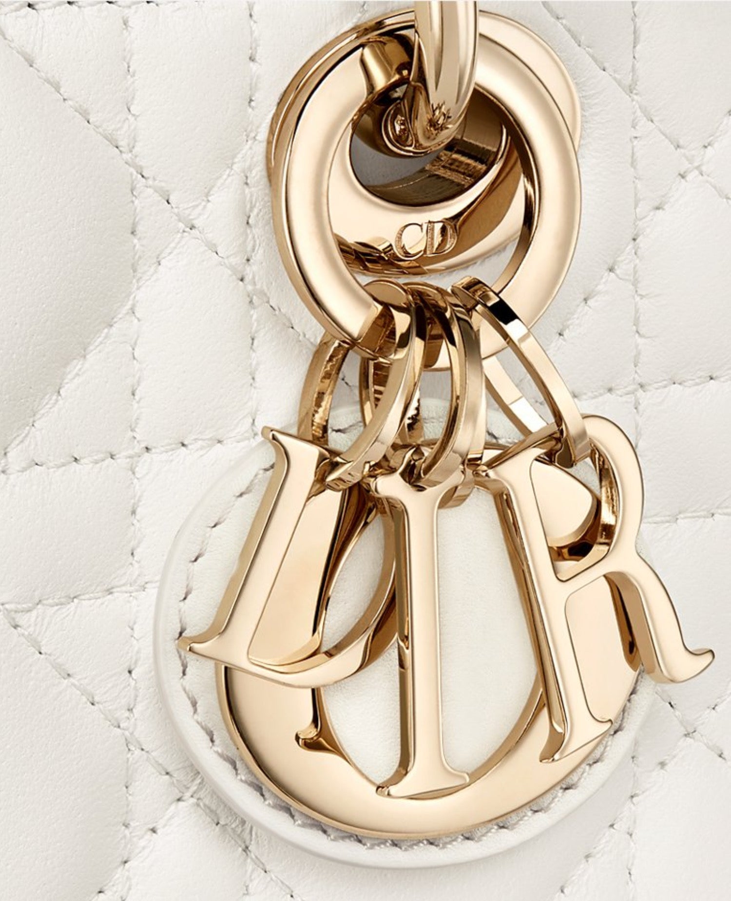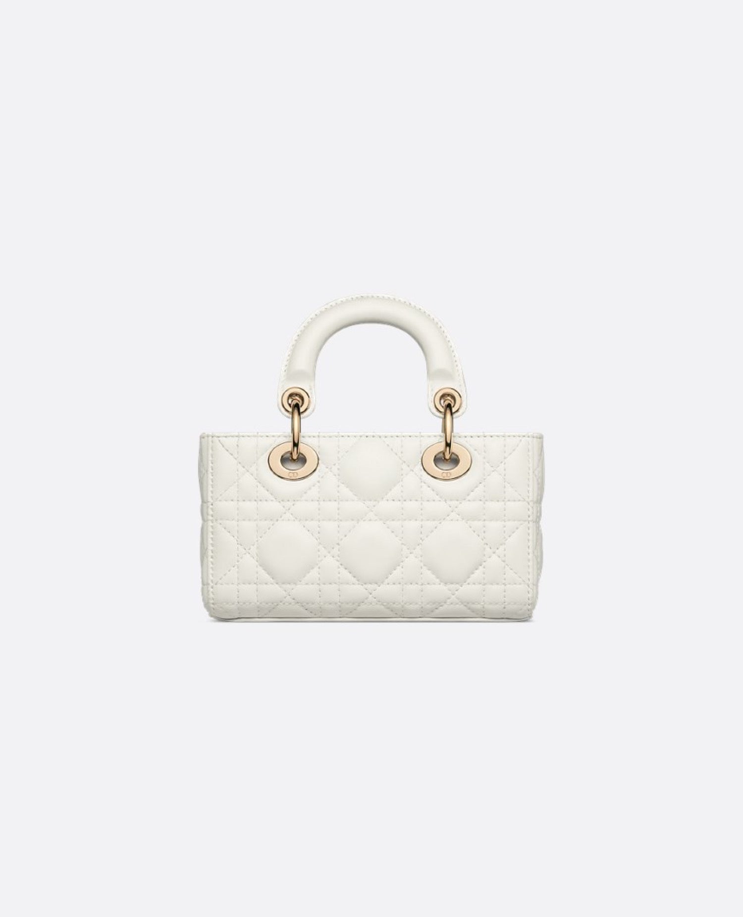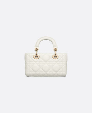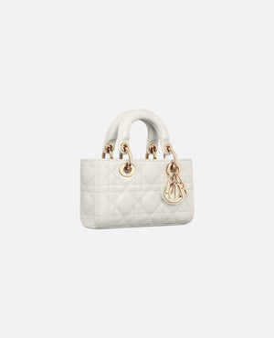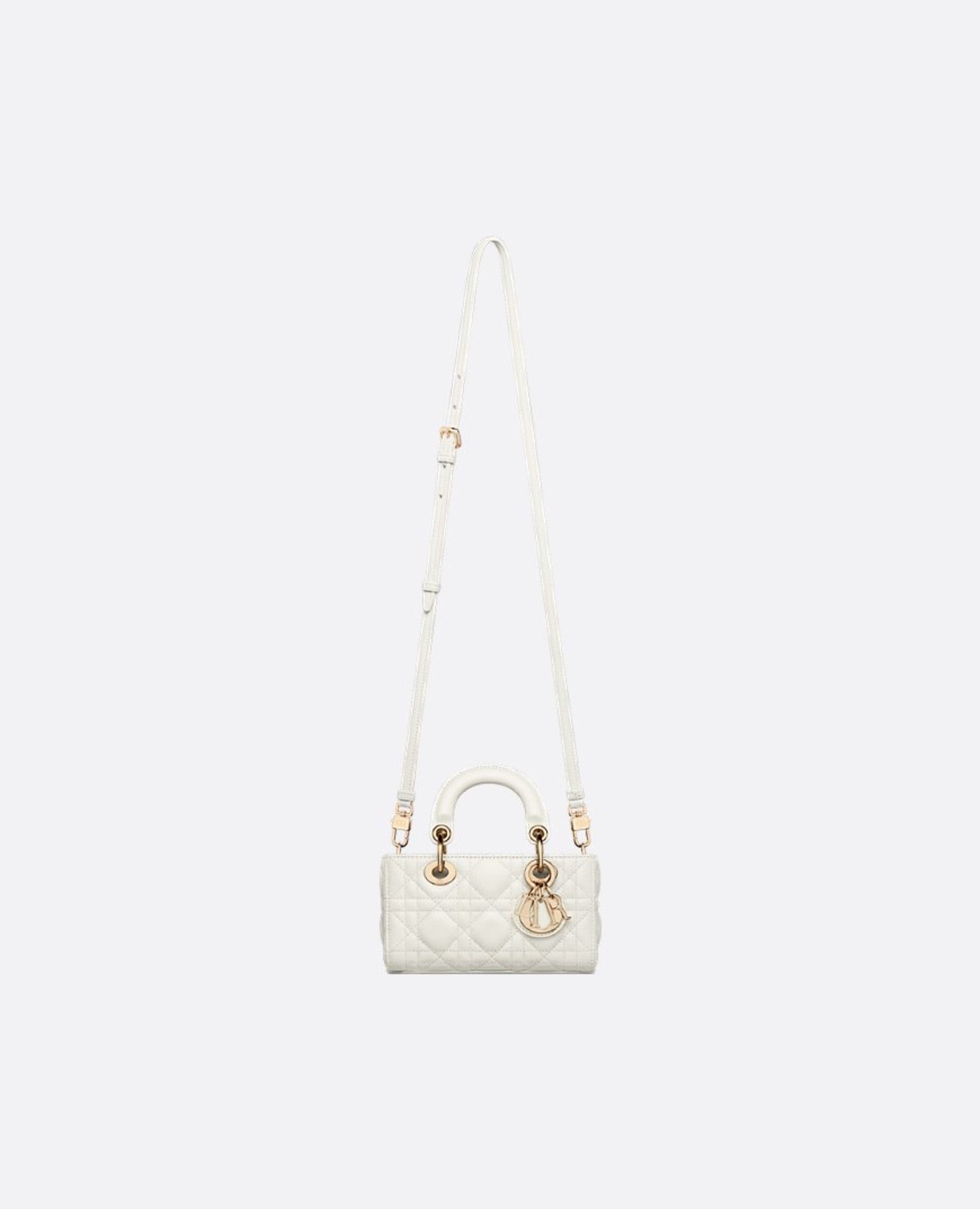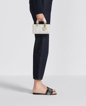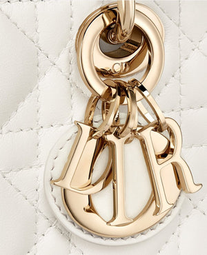 The Lady D-Joy micro bag perfectly embodies DR's vision of elegance and beauty. Refined and feminine, this timeless creation pays homage to the sleek design of the iconic Lady DR line. Crafted from latte-colored lambskin with Cannage stitching, it is embellished with DR charms in pale gold metal. Featuring a detachable chain strap and an adjustable and removable leather strap, this Lady D-Joy micro bag can be carried by hand, on the shoulder, or across the body, making it the perfect companion for day or night.