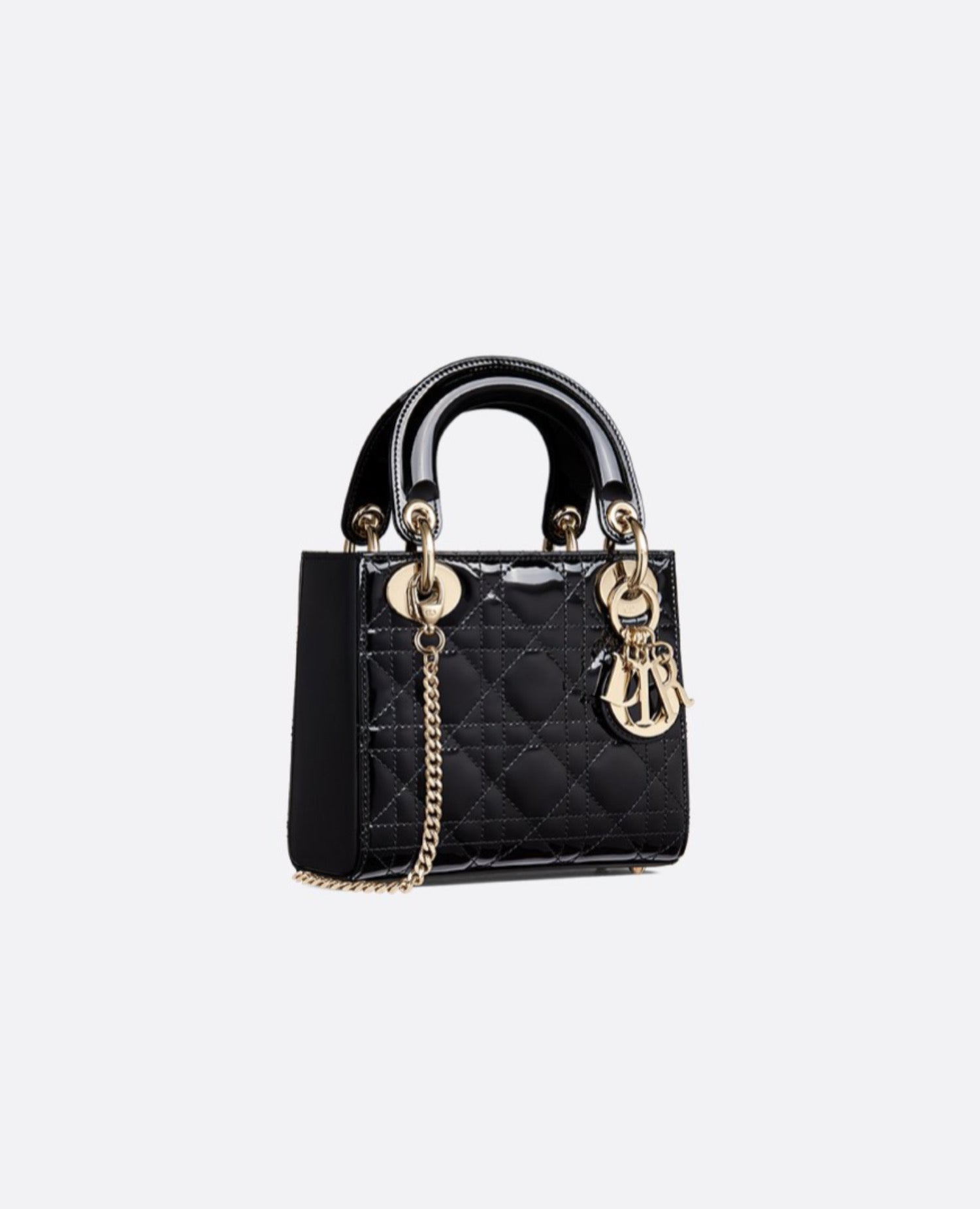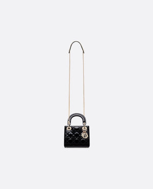 DR Mini Lady DR Bag Black Cannage patent Gold Hardware