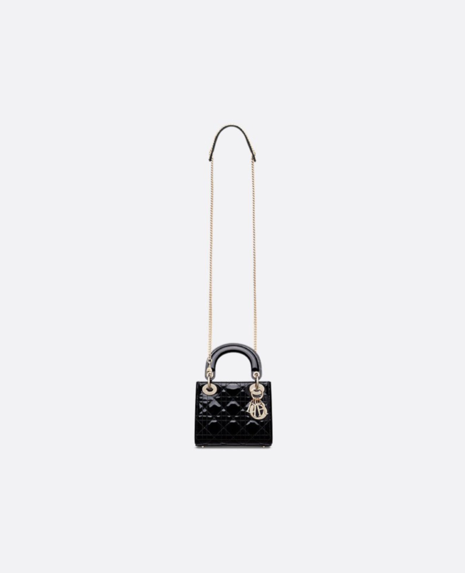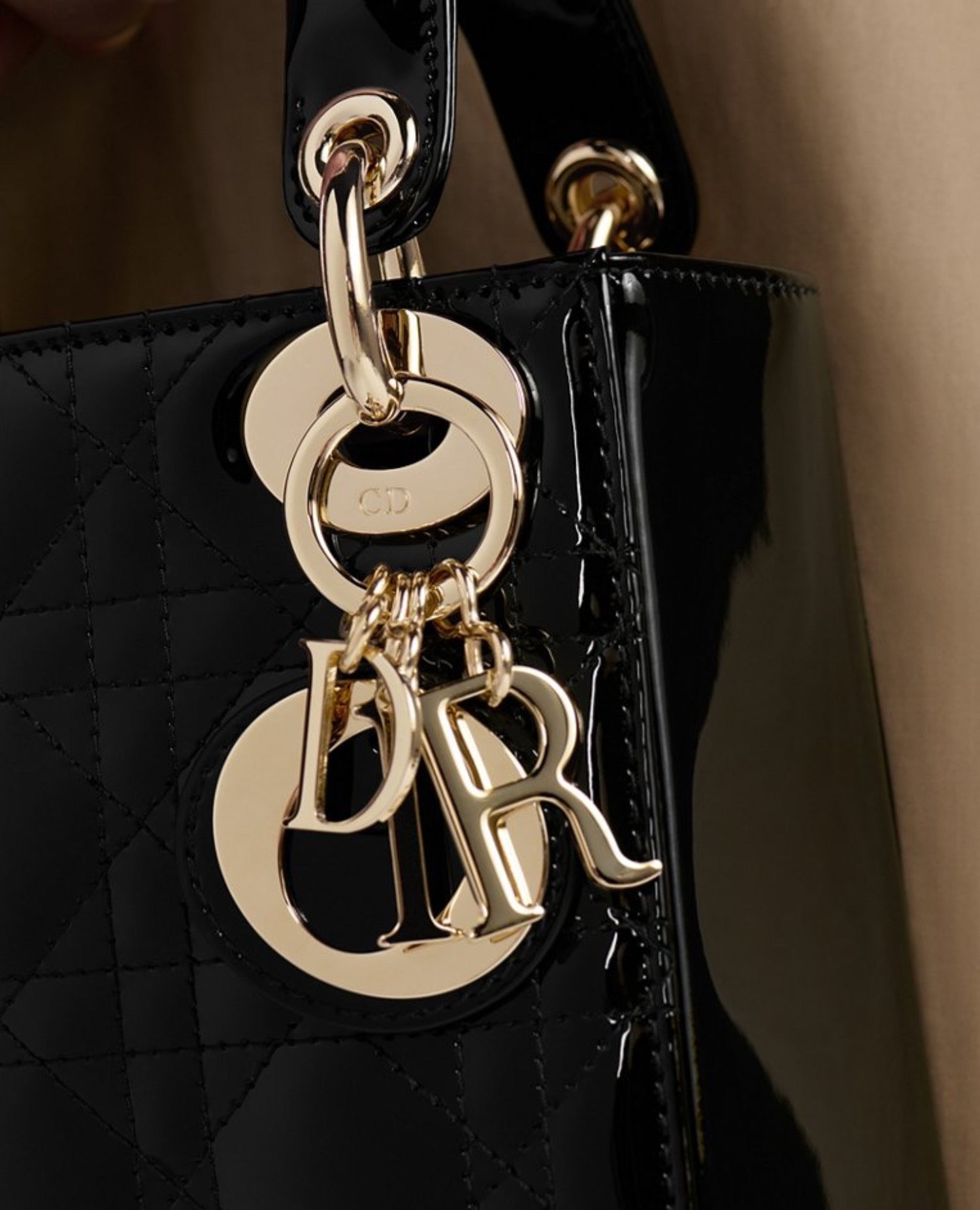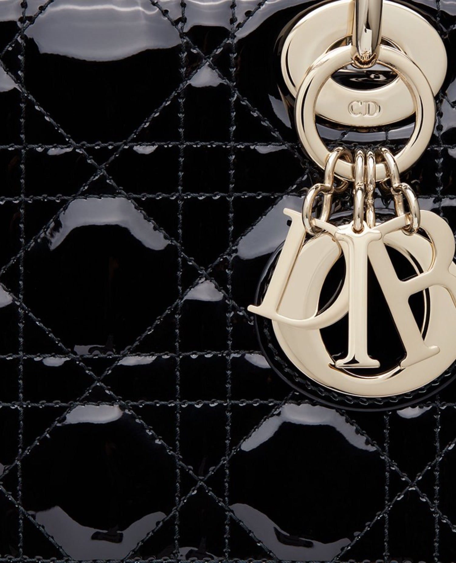 The Lady DR bag embodies the Maison's vision of elegance and beauty. Its stylish and sophisticated design exudes a timeless spirit. It is crafted from black patent calfskin with "cannage" stitching, creating the legendary, instantly recognisable quilted texture. A pale gold-tone metal DR charm completes the bag's appeal. With a detachable chain shoulder strap, this mini bag can be worn by hand or cross-body, making it the perfect accessory for an evening out.