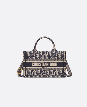 The DR Book Tote is a House classic and original design by Maria Grazia Chiuri, Creative Director of DR. The style is fully embroidered with the House's hallmark blue DR Oblique motif and showcases the DR Paris signature. Exemplifying House savoir-faire, the miniature style features an adjustable and removable strap that allows it to be carried by hand, worn over the shoulder or crossbody.