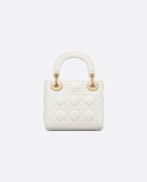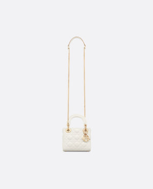 The Lady DR bag epitomizes the House's vision of elegance and beauty. Sleek and refined, the timeless style is crafted in latte pearlescent lambskin and covered with Cannage stitching, creating the unmistakable quilted texture. Pale gold-finish metal D.I.O.R. charms embellish and illuminate its silhouette. Equipped with a removable chain shoulder strap, the miniature Lady DR bag can be carried by hand or worn crossbody as an ideal evening wear companion.