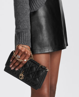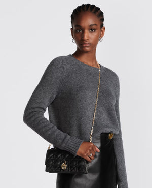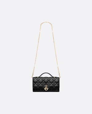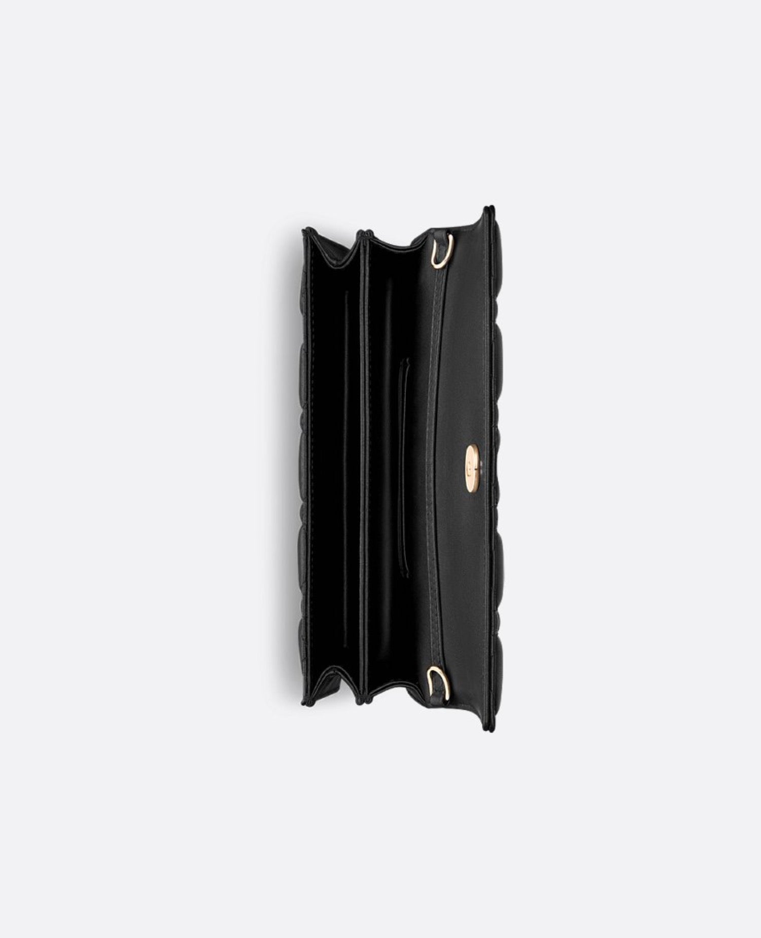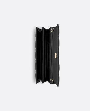 The Miss DR mini bag expands the line with an elegant and functional design. Crafted in black Cannage lambskin, it features a flap enhanced by a D.I.O.R. charm on the front. Equipped with compartments and card slots, the functional accessory holds all the essentials and is the ideal day and evening companion. A top handle completed by a removable chain punctuated with resin pearls allows the bag to be carried by hand or worn crossbody.