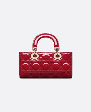 The Lady D-Joy bag captures the House's vision of elegance and beauty by showcasing the iconic streamlined aesthetic of the Lady DR line. Crafted in cherry red patent calfskin with Cannage stitching, the refined and timeless style features an unmistakable legendary quilted texture. Pale gold-finish metal D.I.O.R. charms embellish and illuminate the silhouette. Equipped with one detachable chain strap and another adjustable and removable leather strap, the small Lady D-Joy bag can be carried by hand, worn over the shoulder or crossbody as a daily companion.