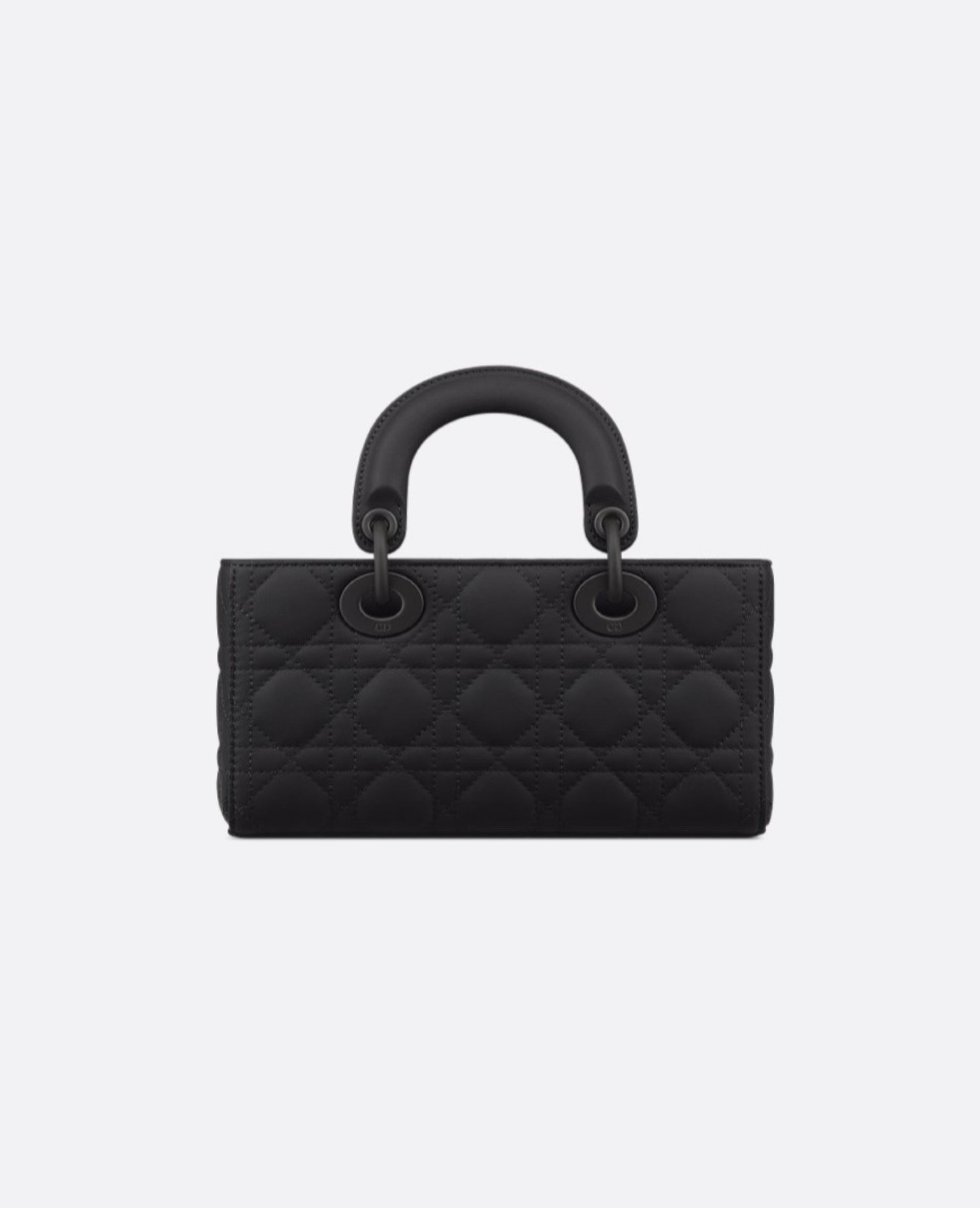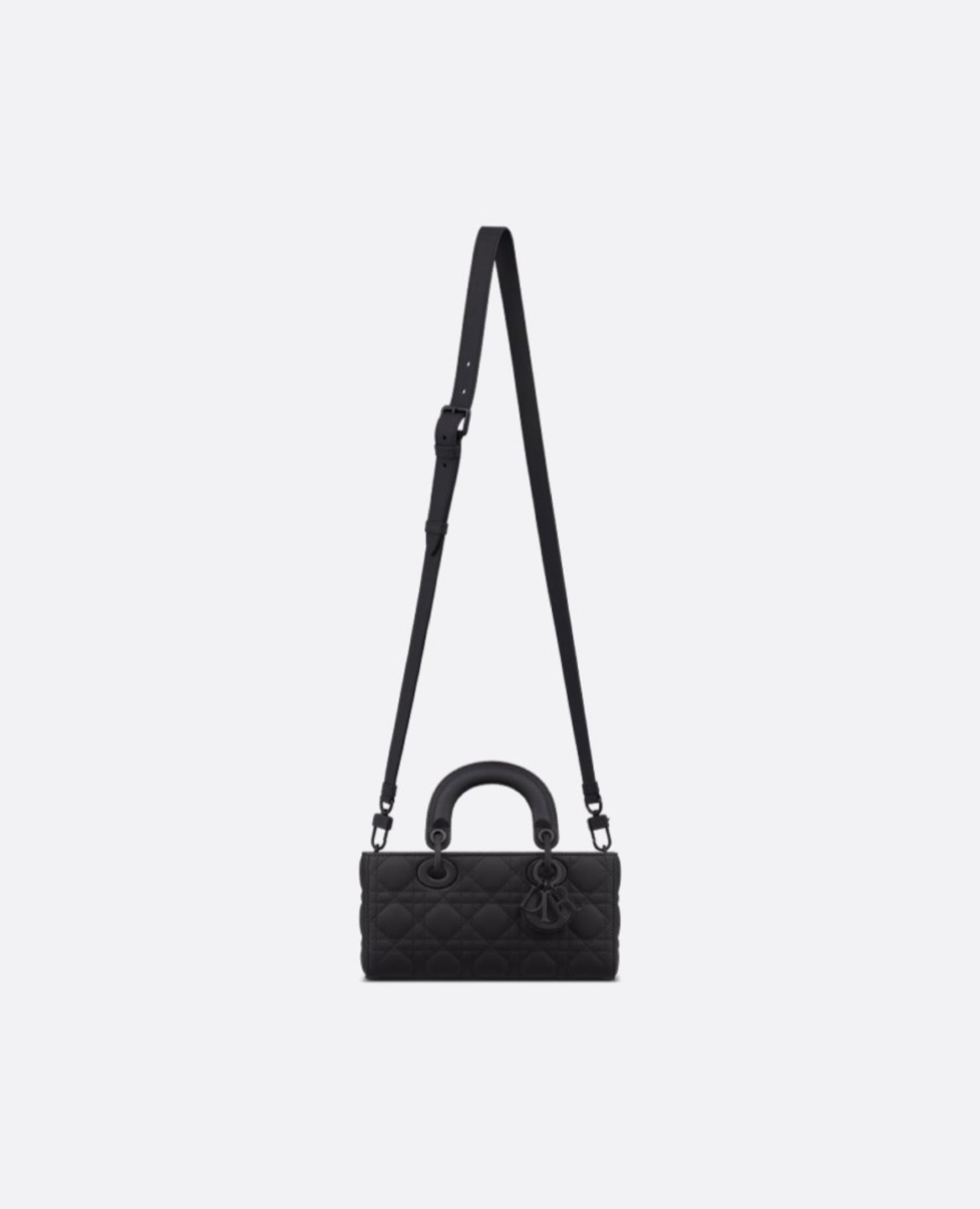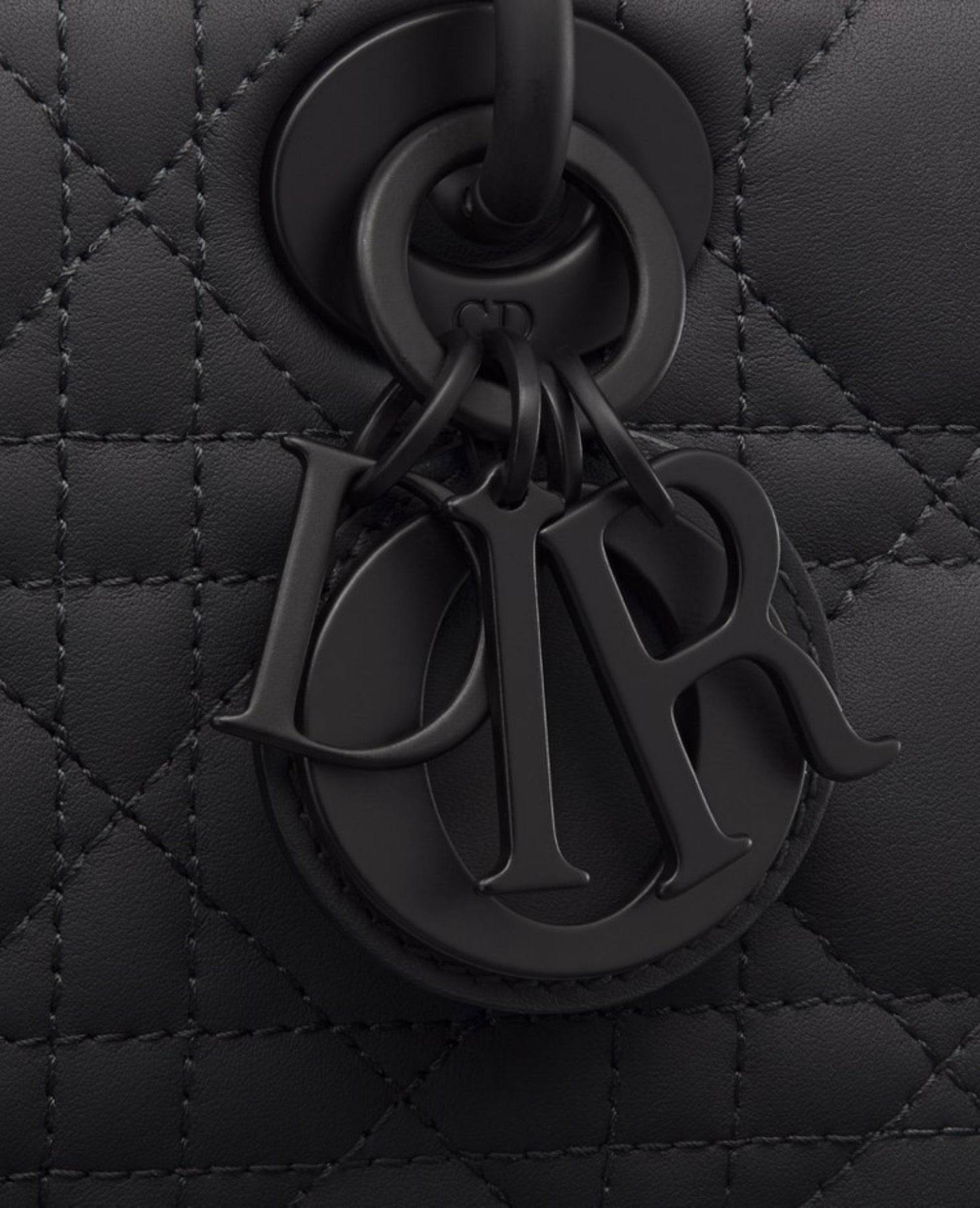The Lady D-Joy bag captures the House's vision of elegance and beauty by showcasing the iconic streamlined aesthetic of the Lady DR line. Crafted in black ultramatte calfskin with Cannage stitching, the refined and timeless style has a legendary quilted texture that is unmistakable. Tonal metal D.I.O.R. charms add an elegant touch. Featuring one detachable chain strap and another adjustable and removable leather strap, the small Lady D-Joy bag can be carried by hand, worn over the shoulder or crossbody as a daily companion.