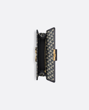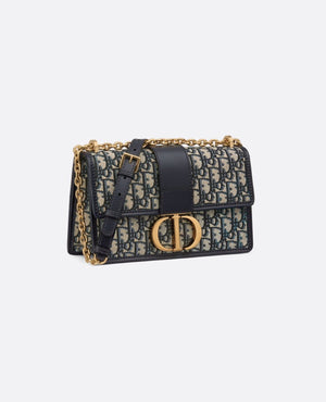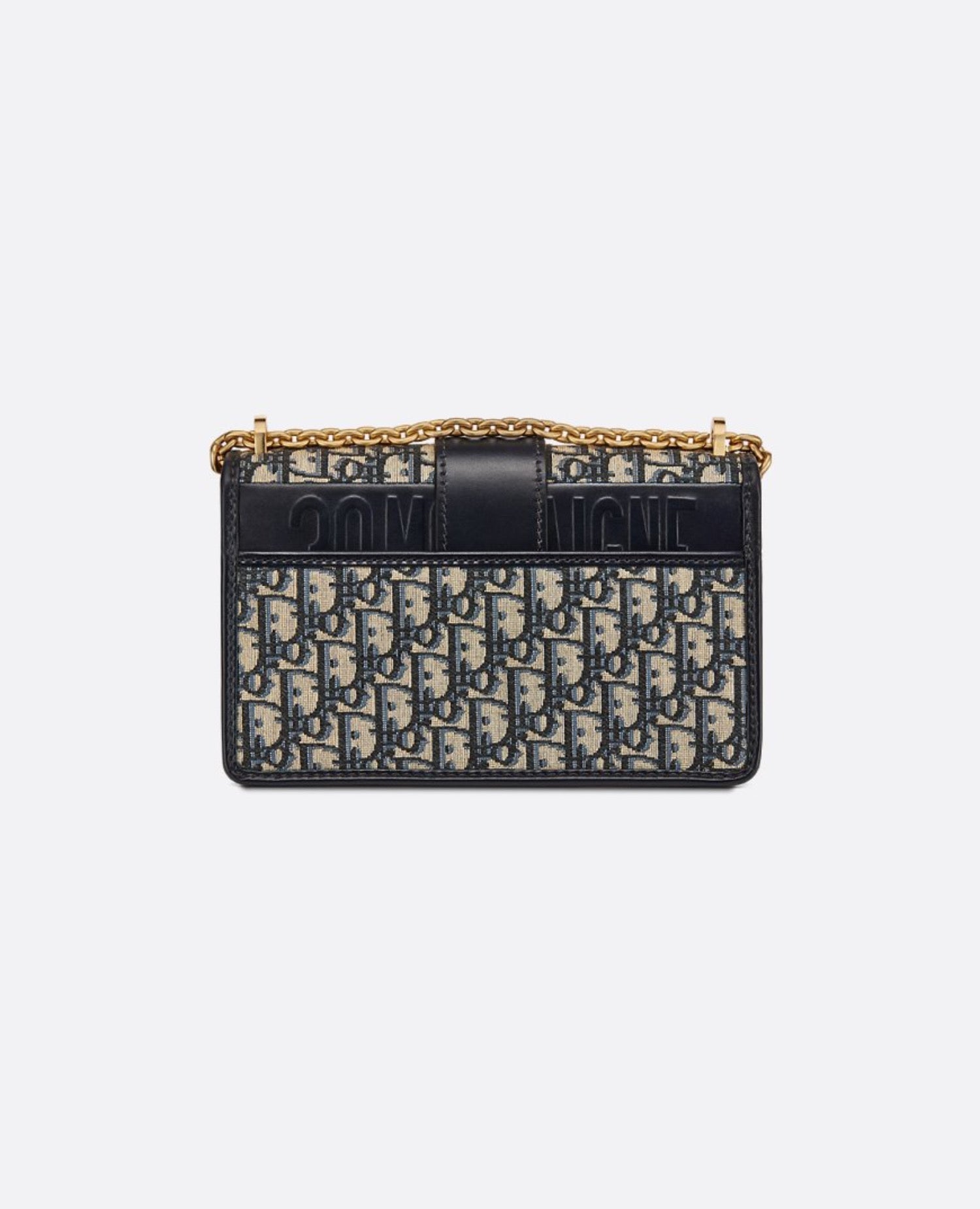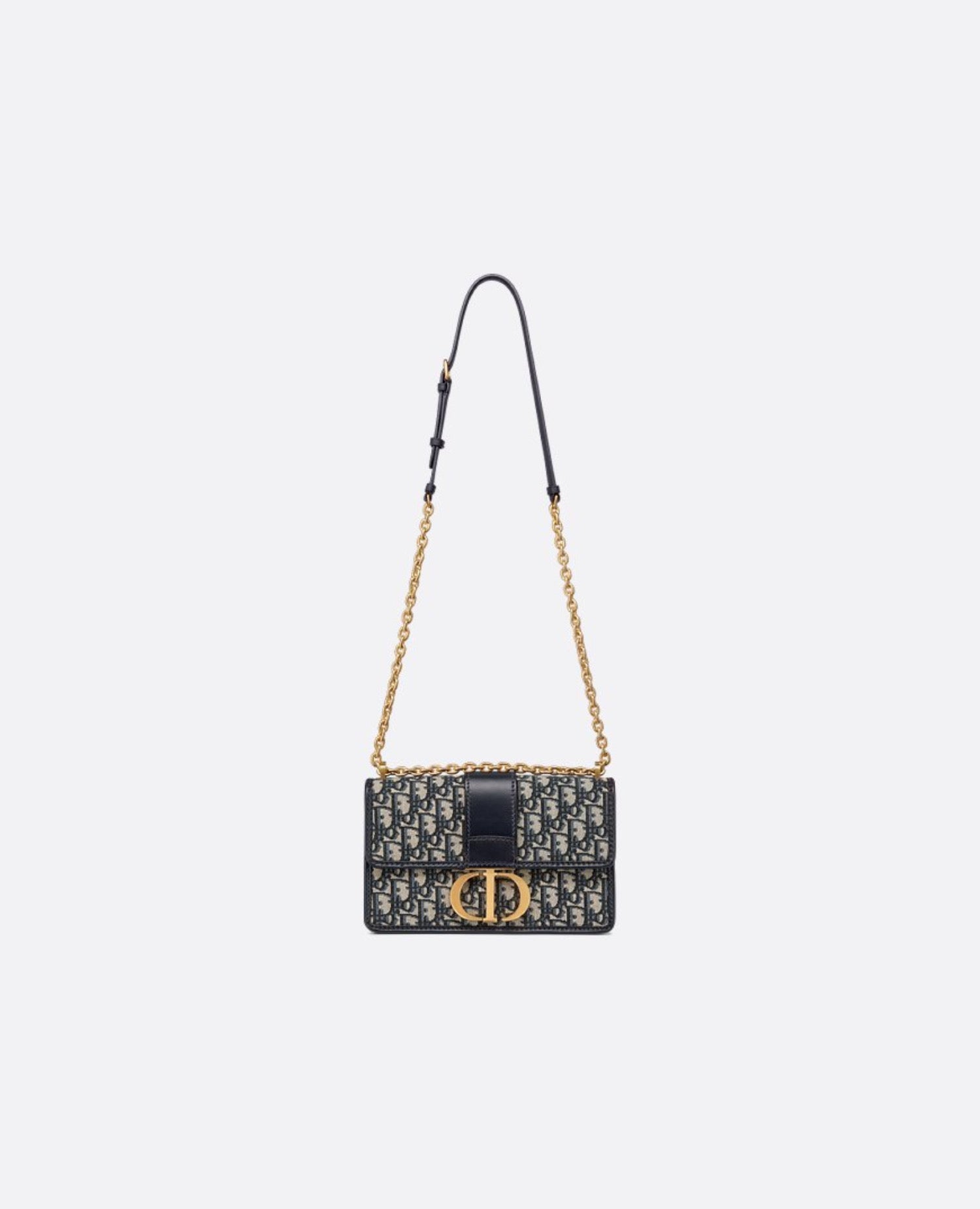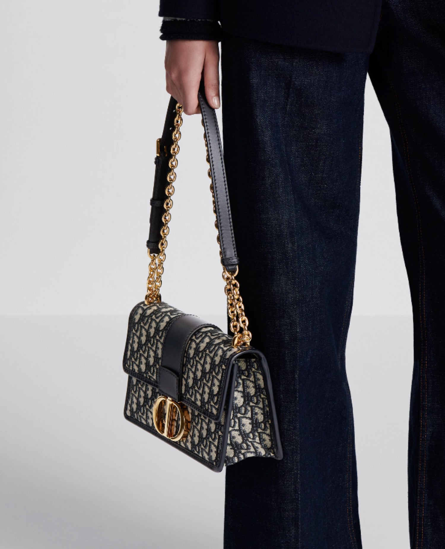 The 30 Montaigne line, inspired by the hallmark address, offers essential pieces that embody the House's iconic codes. The bag is crafted in blue jacquard and highlights the House's classic DR Oblique motif for an elegant and modern design. The flap has an antique gold-finish metal CD clasp, inspired by the seal of a DR perfume bottle. Other details, like the embossed 30 Montaigne signature at the back, accent the streamlined design. Thanks to the chain strap, the bag can be carried by hand, worn over the shoulder or crossbody.
