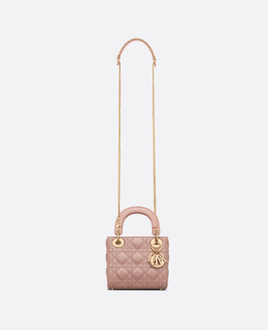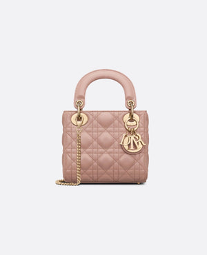 The Lady DR bag epitomizes the House's vision of elegance and beauty. Refined and sleek, the timeless creation is crafted in blush lambskin and covered with Cannage stitching, creating an instantly recognizable quilted texture. The pale gold-finish metal D.I.O.R. charms embellish and illuminate its silhouette. Featuring a removable chain shoulder strap, the miniature Lady DR bag can be carried by hand or worn crossbody as an ideal evening wear companion.