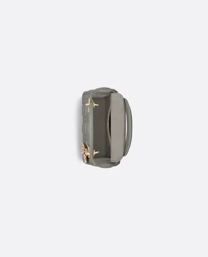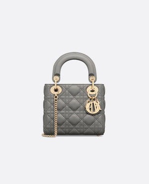 The Lady DR bag epitomizes the House's vision of elegance and beauty. Sleek and refined, the style is timeless. It is crafted in stone gray lambskin with Cannage stitching, creating the instantly recognizable quilted texture. The pale gold-finish metal D.I.O.R. charms embellish and illuminate its silhouette. Featuring a removable chain shoulder strap, the miniature Lady DR bag can be carried by hand or worn crossbody as an ideal evening wear companion.