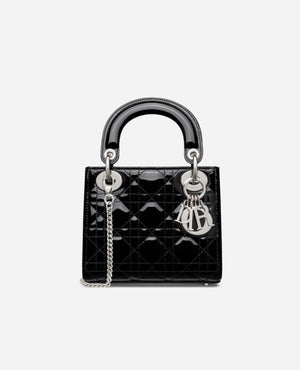 DR Mini Lady DR Bag Black Patent Silver Hardware