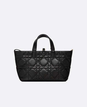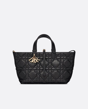 Unveiled at the Spring-Summer 2023 Fashion Show, the DR Toujours bag is distinguished by a casual and practical design. Crafted in black calfskin with Macrocannage topstitching, it showcases a spacious interior compartment with a matching pouch to organize the essentials. Its thin leather strap closure keeps items secure while the D of the CD Lock clasp twists to adjust the sides and enhance the bag's silhouette. The leather handles can be adjusted using the small notches in order to be able to carry the medium bag by hand or wear it over the shoulder.