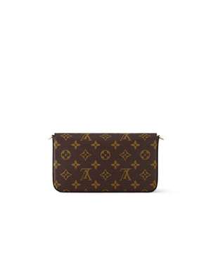 The versatile Félicie Pochette flap pouch is fashioned from Monogram canvas and lined in fuchsia microfiber. Inside there are two removable pockets: a zipped pocket and a flat pocket with eight card slots. The removable gold-color metallic chain enables shoulder and cross-body carry. The Félicie closes with a press-stud.