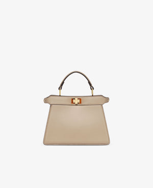 The iconic Peekaboo ISeeU small size bag is perfect. Made in soft paded nappa leather in a light grey, it is decorated with a classic twisted clasp on both sides.