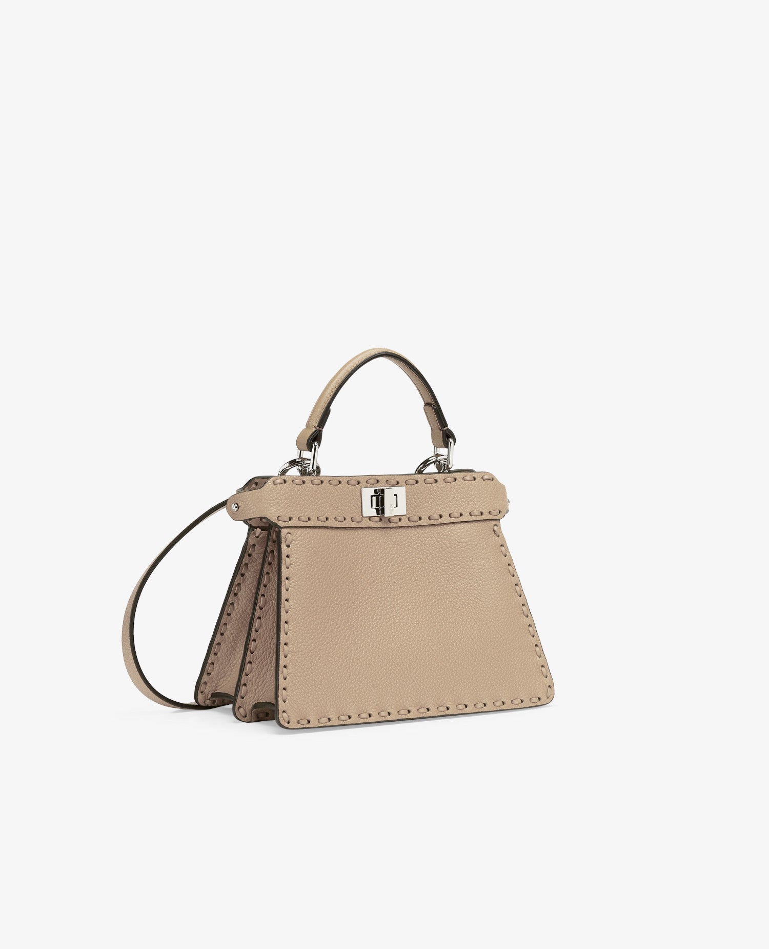 Iconic Peekaboo ISeeU bag in an ideal compact size, made with 306 hand-sewn tone-on-tone macro topstitches, an emblem of the iconic Selleria workmanship.