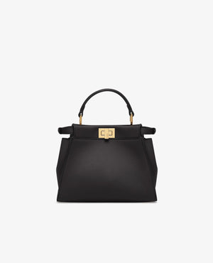 Iconic small Peekaboo bag made of soft black leather and embellished with the classic twist lock on both sides.