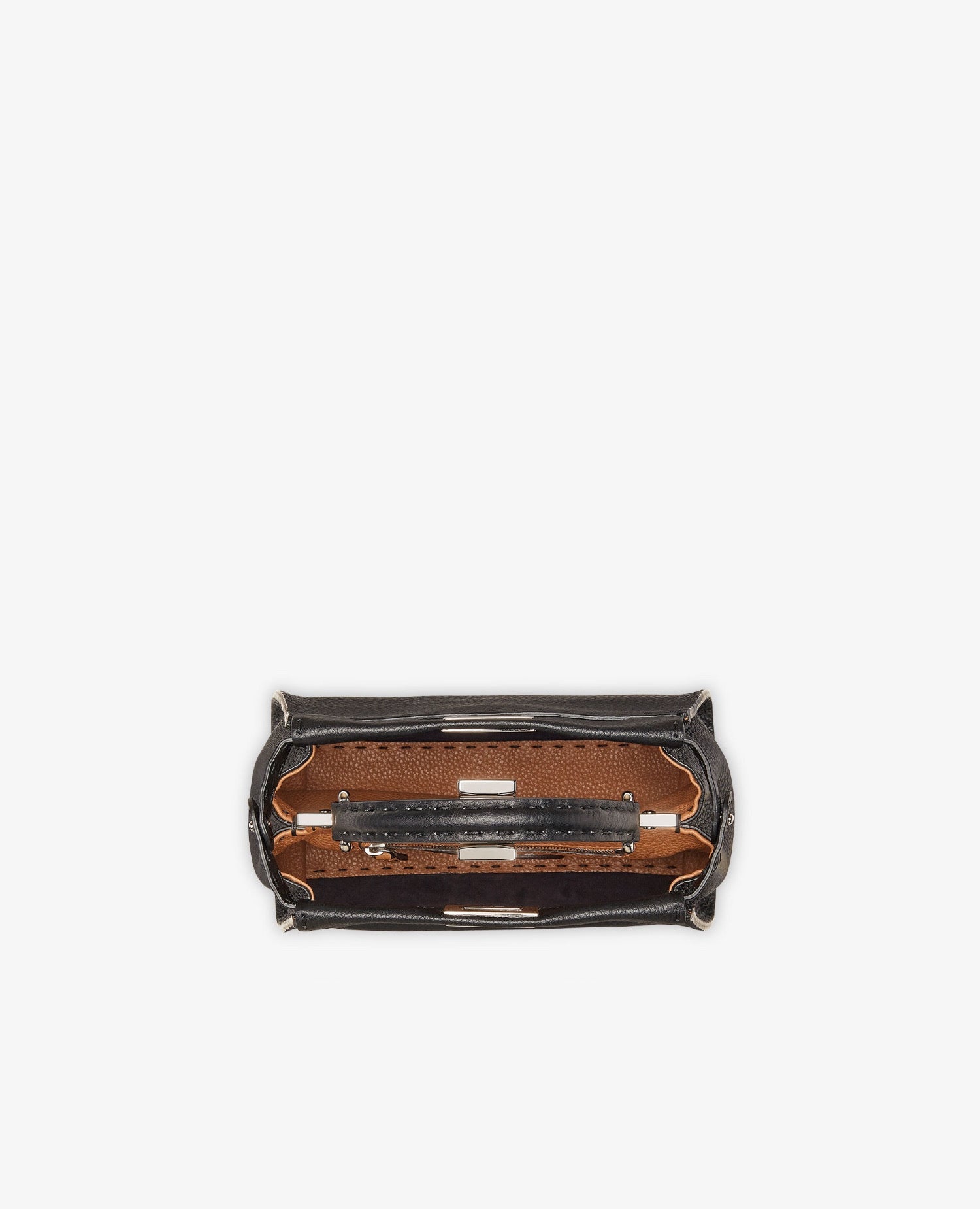 Small iconic Peekaboo bag made with 1048 hand-sewn tone-on-tone macro topstitches, an emblem of the iconic Selleria workmanship handed down through generations of FND artisans since 1925.