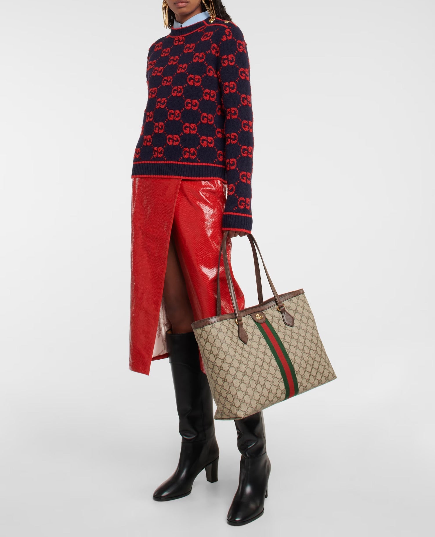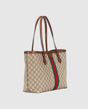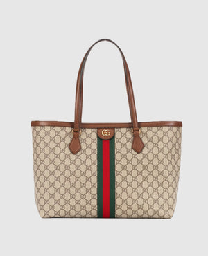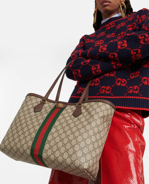 Inspired by the summer spirit and beach clubs on the Italian coast, this item is part of GCC Lido. A classic combination of the House's most defining codes—the GG motif and Web stripe—the world of Ophidia continues to evolve, incorporating new shapes and silhouettes each season. With recognizable design elements in a practical new shape, this new medium sized tote is trimmed with textured leather and topped with Double G hardware. Thanks to its long leather handles, the style can also be carried as a shoulder bag.