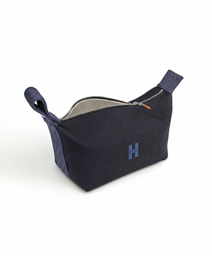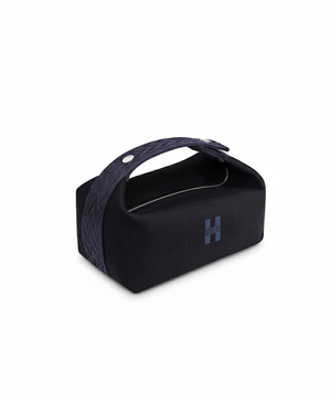 The Bride-a-Brac case is back this winter! It remains as functional as ever and can be hung in your bathroom or closed in a number of different ways using the snap fastener. Two sizes are available: for short and long trips! This season, it comes in two-tone wool twill with a strap featuring graphic motifs from the Cheval Natte design by Tong Reng. Three versions are available to get you through winter.