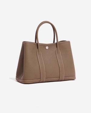 The HMS Garden Party 30 will accompany you from your desk to any occasion. It is crafted from Veau Négonda leather coloured in Étoupe. Topped with palladium hardware, the 2022 bag ("U" stamp) is in perfect condition with tiny scratches on the hardware. Carry it in the crook of your arm for an effortlessly chic style.
