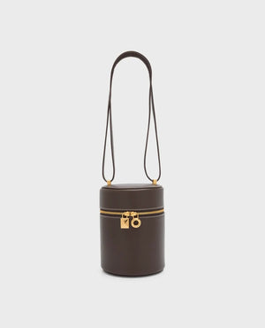 This crossbody bag is a new entry into the Extra Bag line. Made from calfskin, it is pleasant to the touch. The full-bodied leather is enhanced by an artisanal finish, providing a prominent grain, texture and sporty allure. Its unique cylindrical shape evokes vintage small leather goods, while new three-dimensional My Charms complete this elegant, feminine style.
