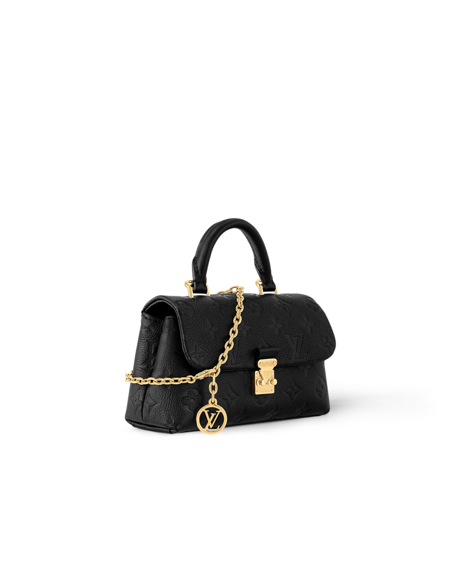 The Nano Madeleine in Monogram Empreinte leather is a miniaturized version of the emblematic Madeleine bag. It is adorned with an iconic S-lock closure and a removable chain embellished with an LV Circle charm. The versatile design is roomy enough to store everyday essentials and can be worn cross-body, over the shoulder or carried by hand.