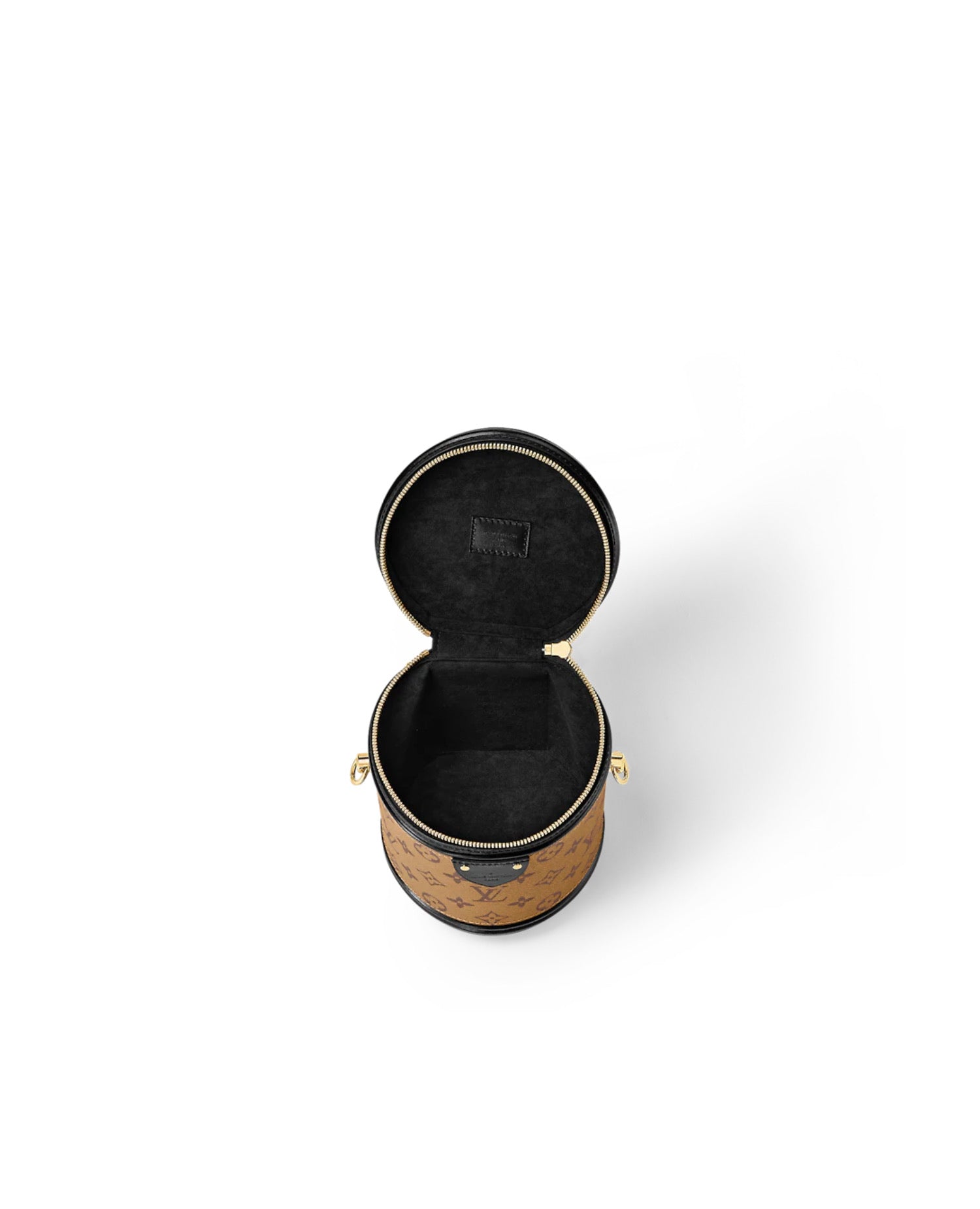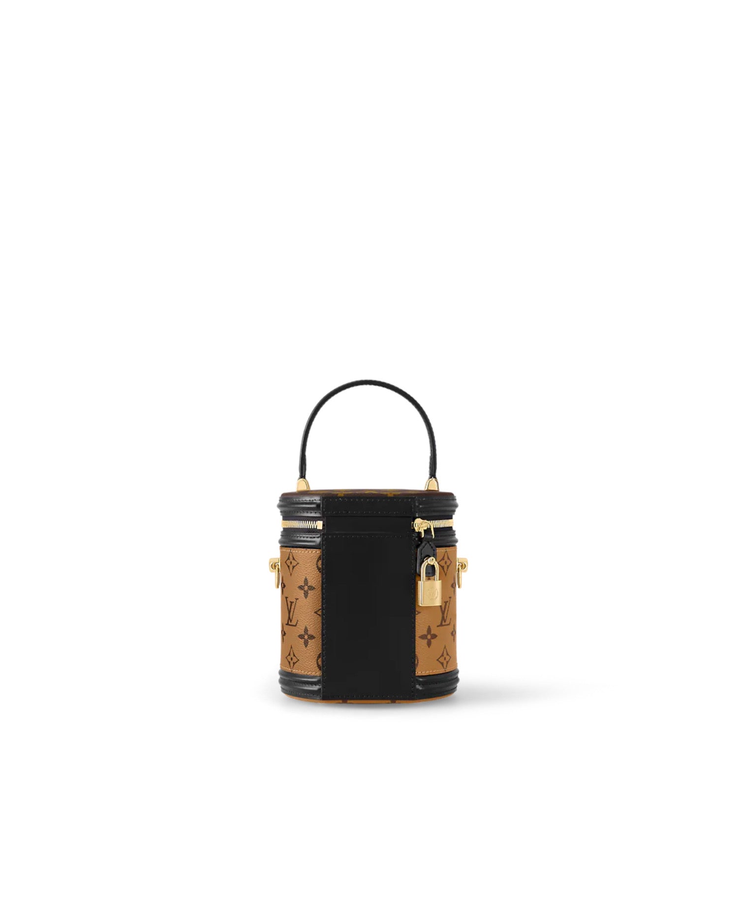 Featuring the historical shape of the LV Cannes beauty case, designer Nicolas Ghesquière revives a long-standing classic with the Cannes handbag. Petite in size and presented in a mix of Monogram and Monogram reverse coated canvas, the elegant piece reanimates a traditional silhouette steeped in LVN heritage. A removable leather strap and top handle provide a range of carrying options.