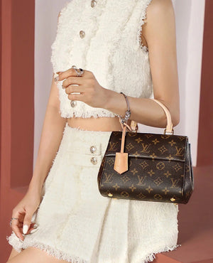 The adorable Cluny Mini handbag in iconic Monogram canvas is designed to delight LV lovers. A perfect little bag for daily wear, it features a signature Toron handle and key bell in the Maison’s classic natural leather. A textile strap enriched with a woven "LVN" can be added or detached, thus enhancing the bag’s versatility.