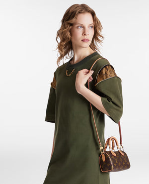 The Nano Speedy revamped in Monogram canvas is the perfect miniature version of LVN's iconic Speedy bag, and the ideal way to carry essentials. This beautifully crafted design is complemented by aged natural cowhide leather and gold-tone hardware. In addition to its two handles, it has a removable, adjustable shoulder strap for different carry options.