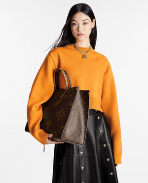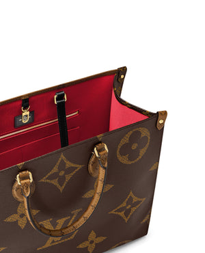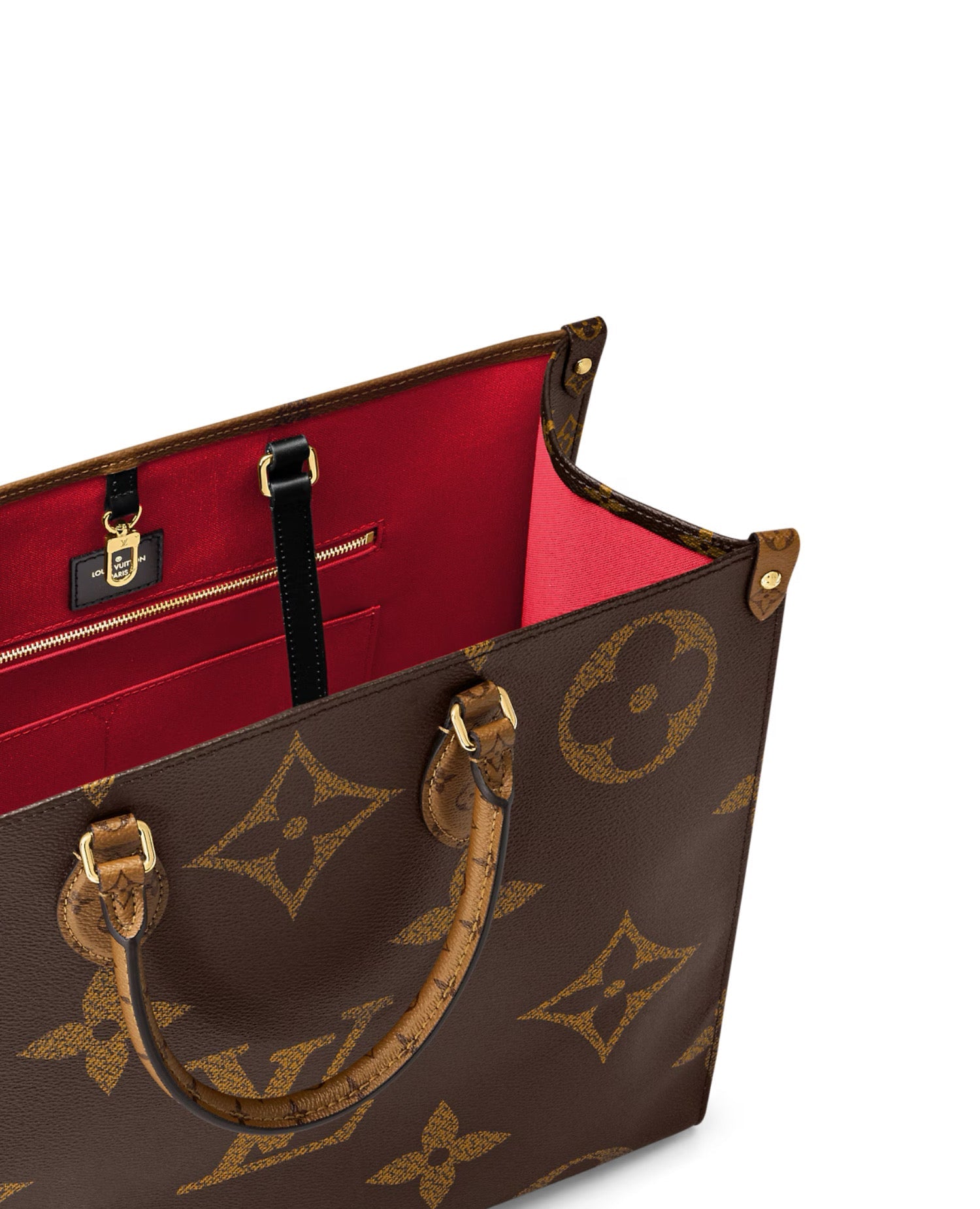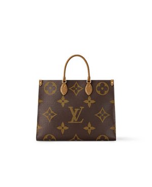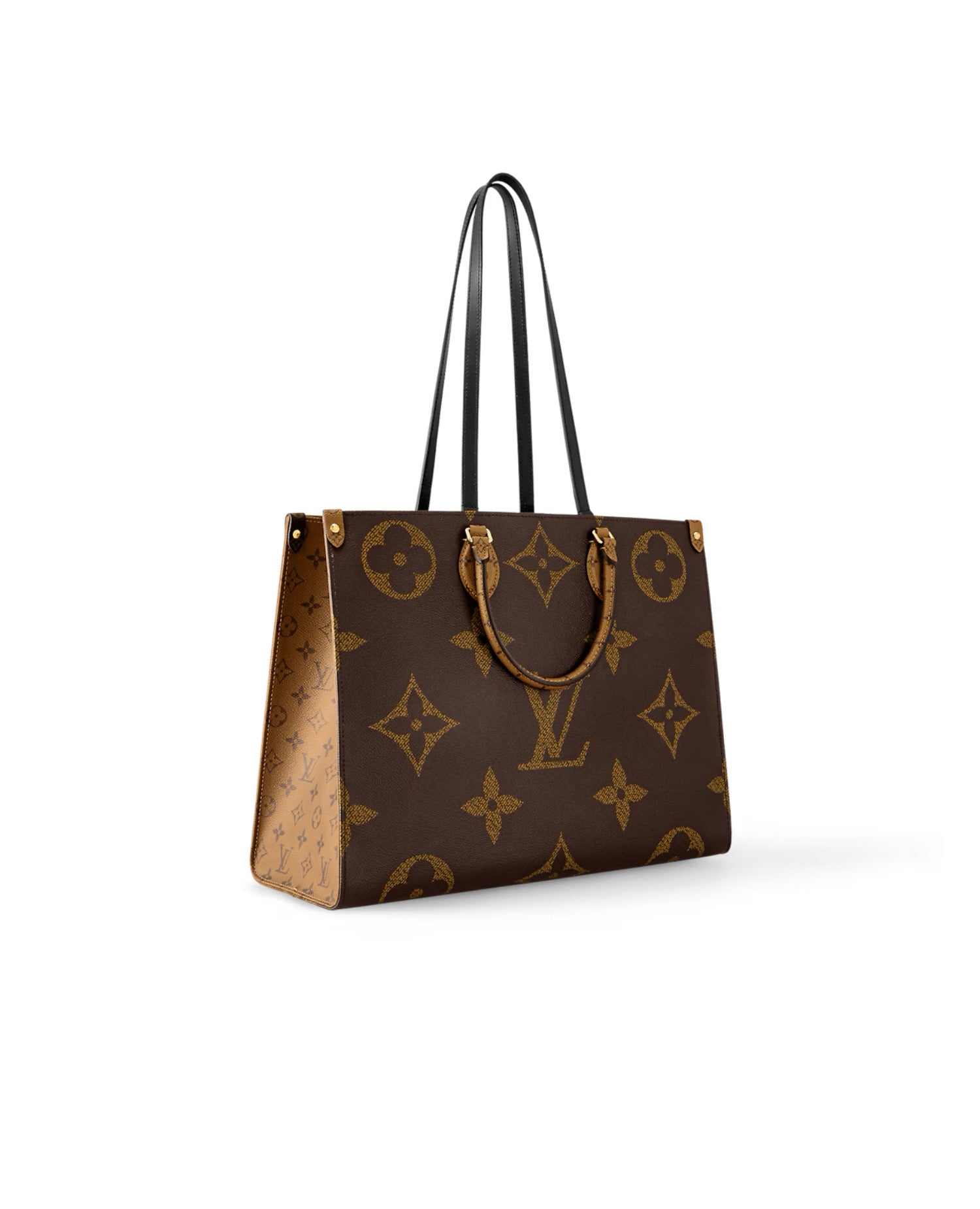 Fashioned from Monogram Giant canvas, the OnTheGo GM tote bag is as striking as it is practical. A Monogram Reverse pattern on the sides and handles creates a stylish contrast in color and scale. With its generous capacity, shoulder straps and iconic Toron top handles, this versatile GM model is an ideal bag for everyday wear.