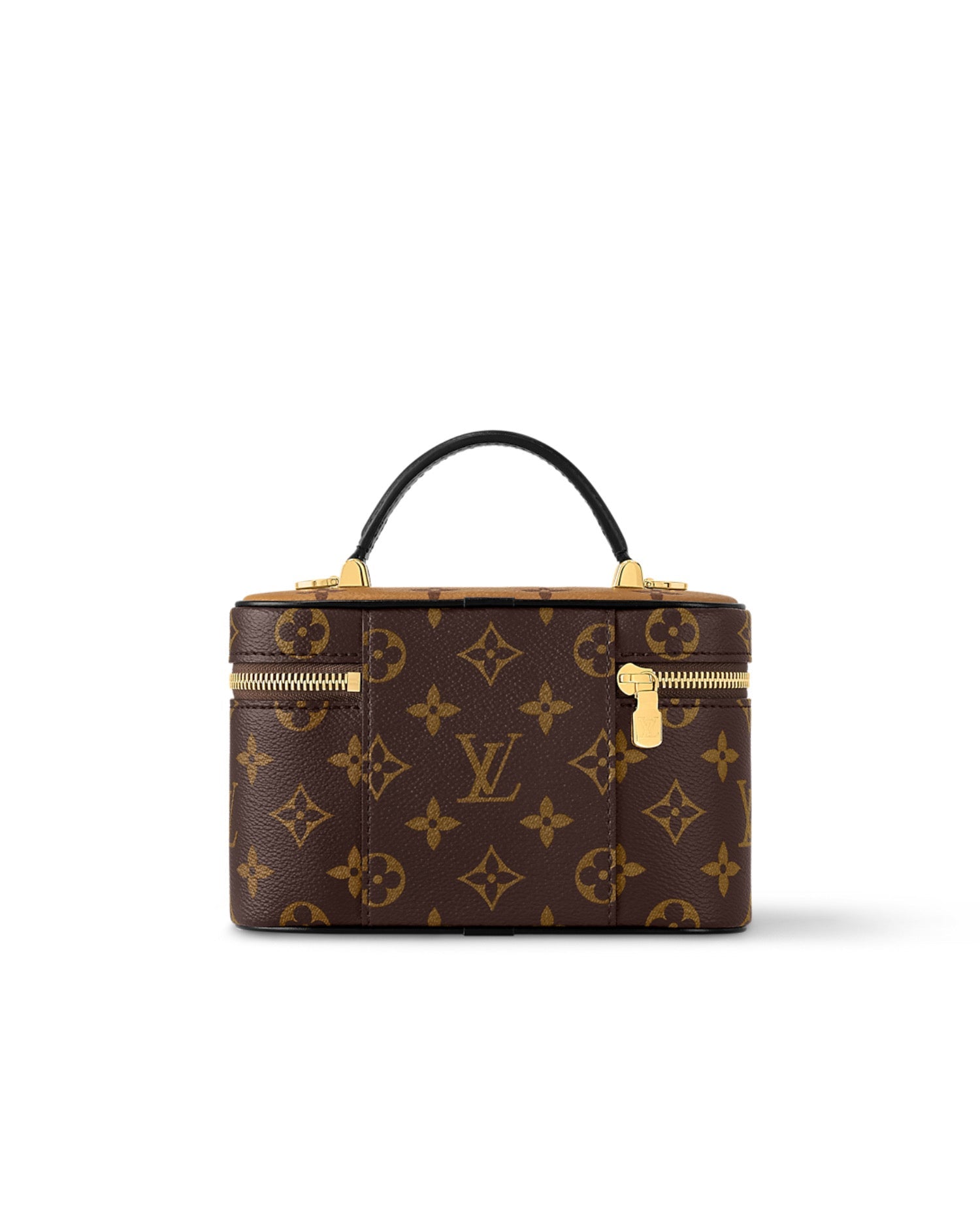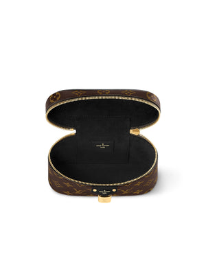 Inspired by heritage vanity cases, the Vanity Chain Pouch in Monogram canvas embodies the spirit of travel. This sophisticated, slim-line bag is complemented by leather trim on its top handle and removable, braided chain. It is notable for its rich signature details, including an LV-engraved padlock and a leather key bell.