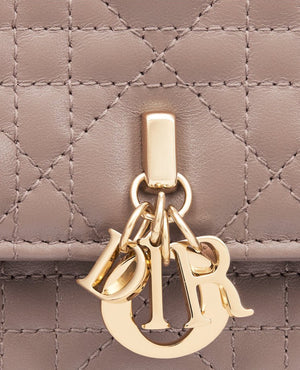 - The Miss DR mini bag elevates the line with an elegant and functional design. Crafted in warm taupe lambskin with Cannage stitching, it features a flap enhanced by D.I.O.R. charms on the front. Equipped with compartments and card slots, the functional accessory holds all the essentials and is the ideal day and evening companion. A top handle completed by a removable chain punctuated with resin pearls allows the bag to be carried by hand or worn crossbody.