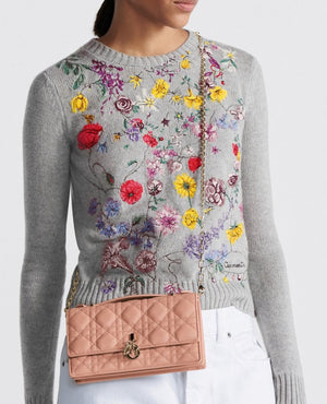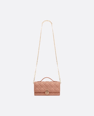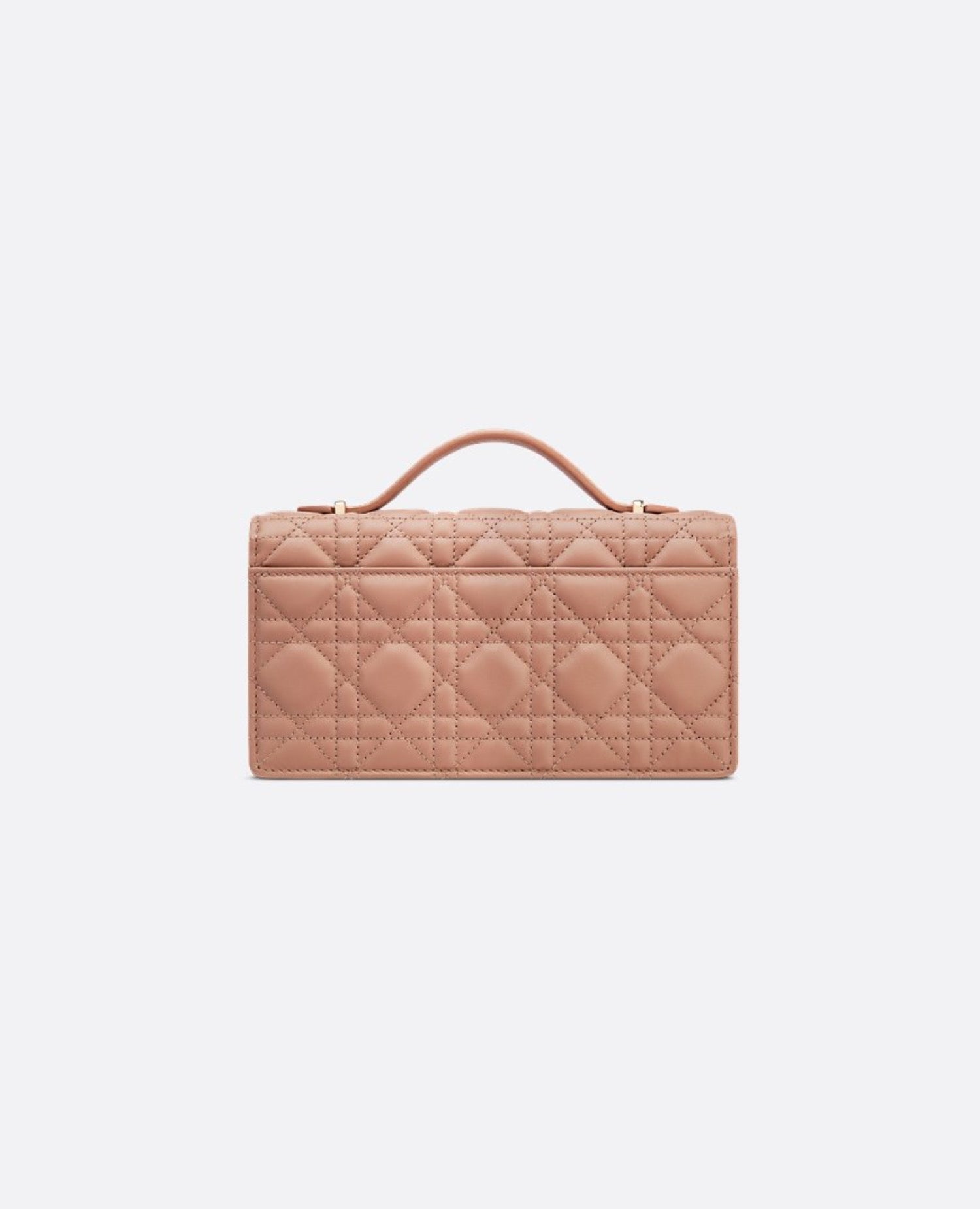 The My DR mini bag expands the line with an elegant and functional design. Crafted in Rose des Vents Cannage lambskin, it features a flap enhanced by D.I.O.R. charms on the front. Equipped with compartments and card slots, the functional accessory holds all the essentials and is the ideal day and evening companion. A top handle completed by a removable chain with resin pearls allows the bag to be carried by hand or worn crossbody.