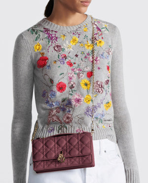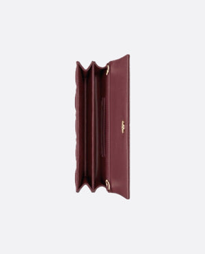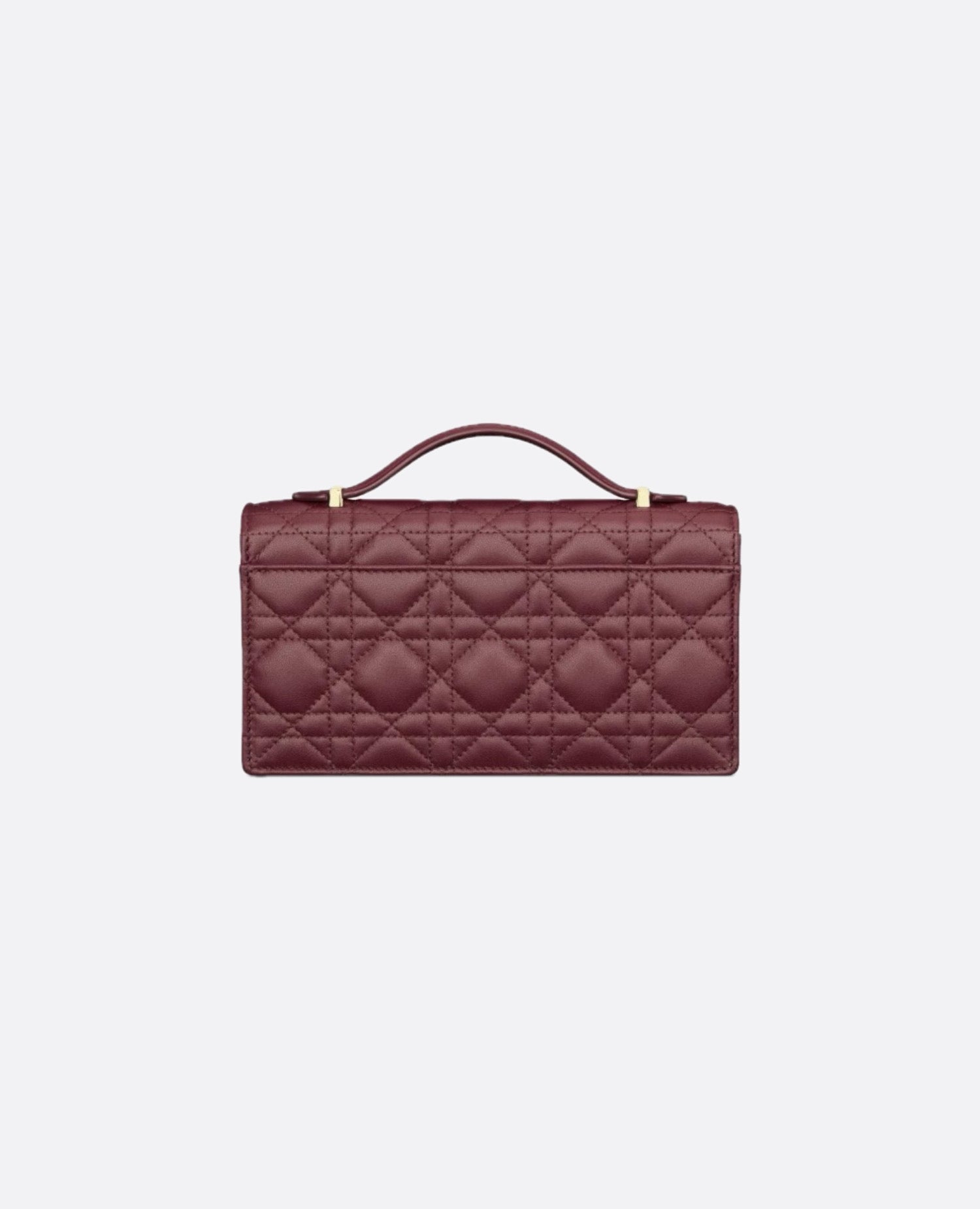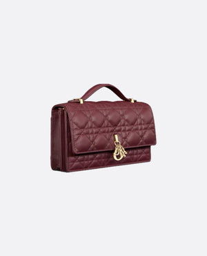 The Miss DR mini bag expands the line with an elegant and functional design. Crafted in burgundy Cannage lambskin, it features a flap enhanced by D.I.O.R. charms on the front. Equipped with compartments and card slots, the functional accessory will hold any essentials and is the ideal day and evening companion. A top handle completed by a removable chain punctuated with resin pearls allows the bag to be carried by hand or worn crossbody.