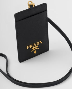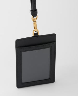 PRD Saffiano Leather Badge Holder Black Gold-toned.