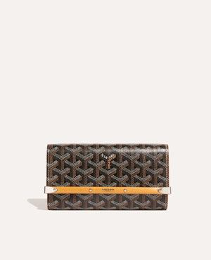 The Monte-Carlo Mini case revisits some of our signature trunk codes such as the wooden rod, bracket corners and trunk rivets. Designed as a case, it can be worn on a belt, with its two leather loops. It can also be worn across the chest with an additional PM strap.