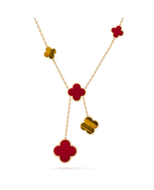 VCF Magic Alhambra Necklace, 6 motifs, yellow gold, Carnelian, Tiger Eye