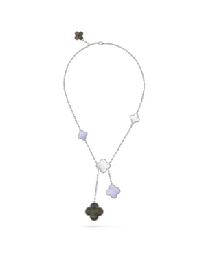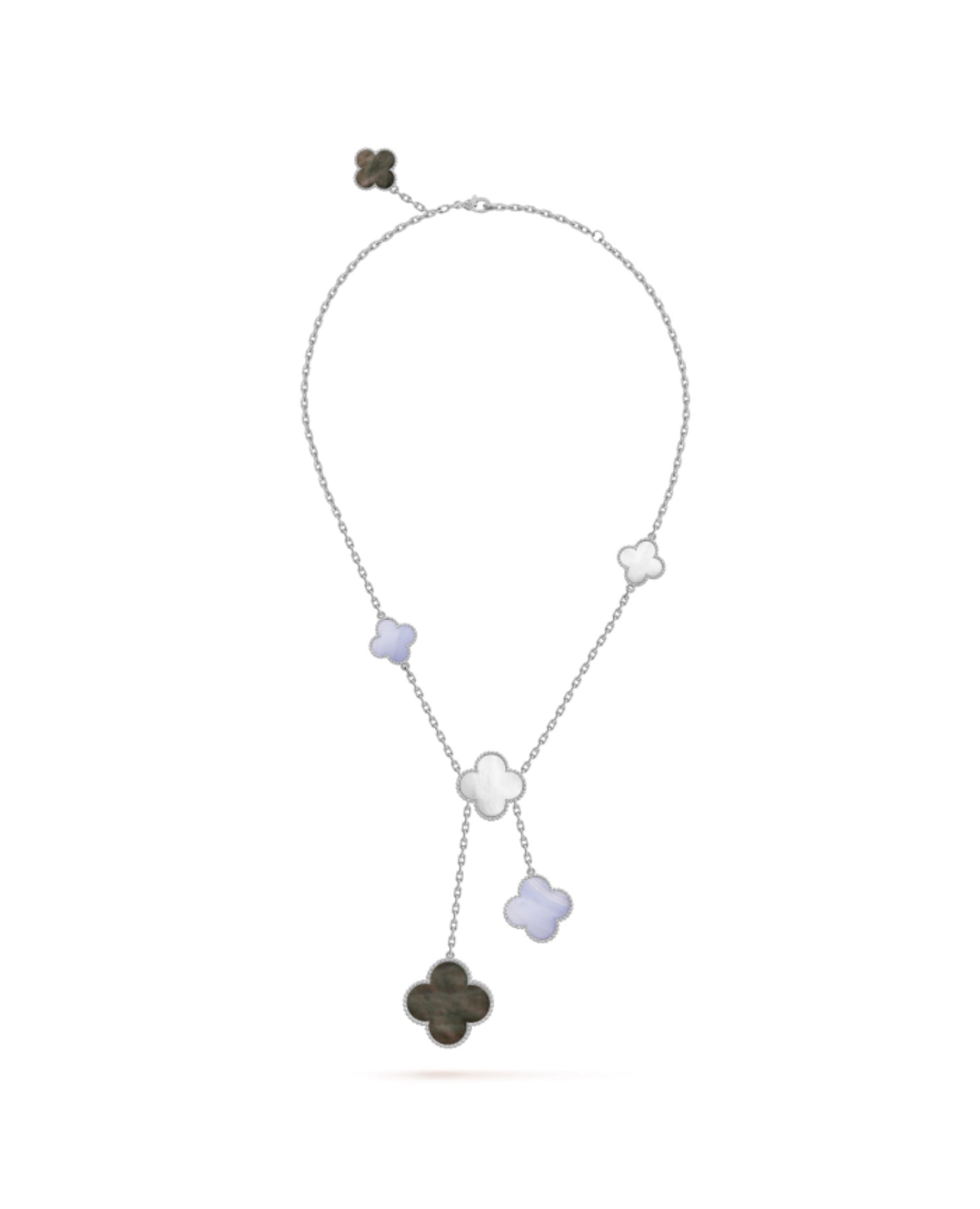 VCF Magic Alhambra necklace, 6 motifs, white gold, Chalcedony, Mother-of-pearl