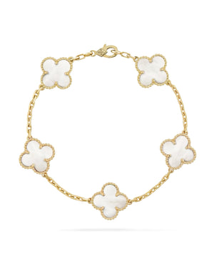VCF Vintage Alhambra bracelet, 5 motifs, yellow gold, Mother-of-pearl