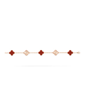 VCF Vintage Alhambra bracelet, 5 motifs, rose gold, Carnelian
